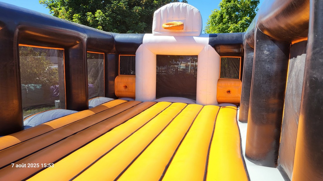 Un terrain original de foot ou de basket pour jouer en équipes, en toute sécurité sur un matelas gonflable.