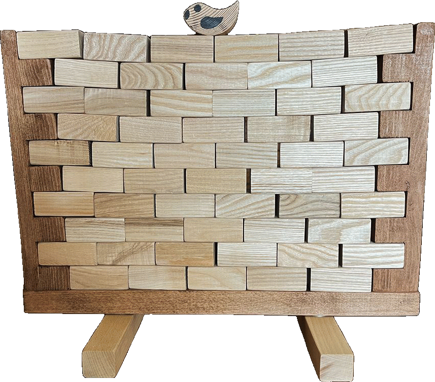 Chaque joueur joue à tour de rôle, le but est d’enlever une brique du mur, mais attention à ne pas faire chuter l’un des 2 oiseaux posés sur le haut de celui-ci.