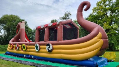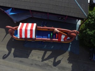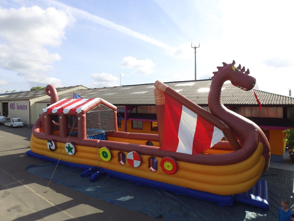 Entrée par l’avant et sortie à l’arrière par le grand toboggan.