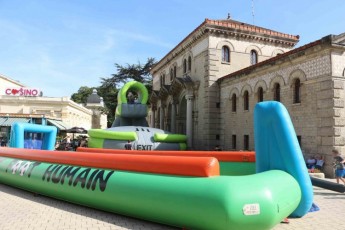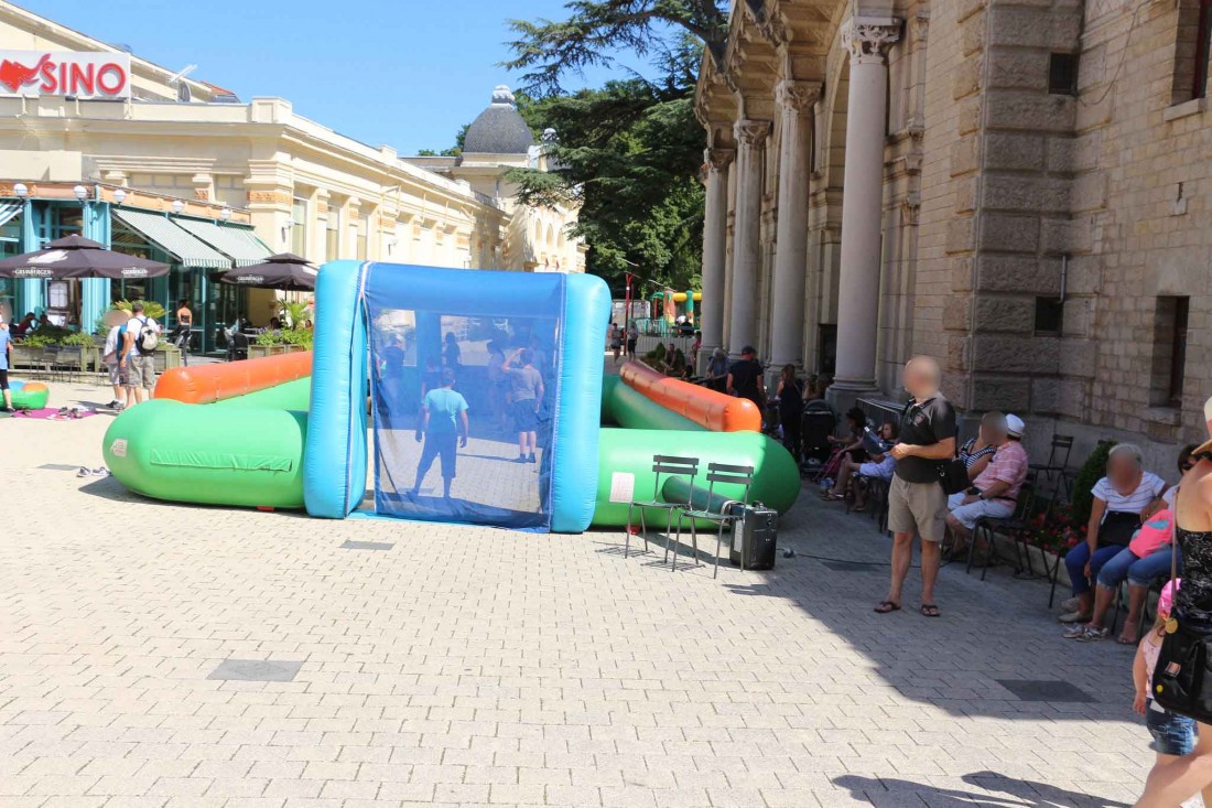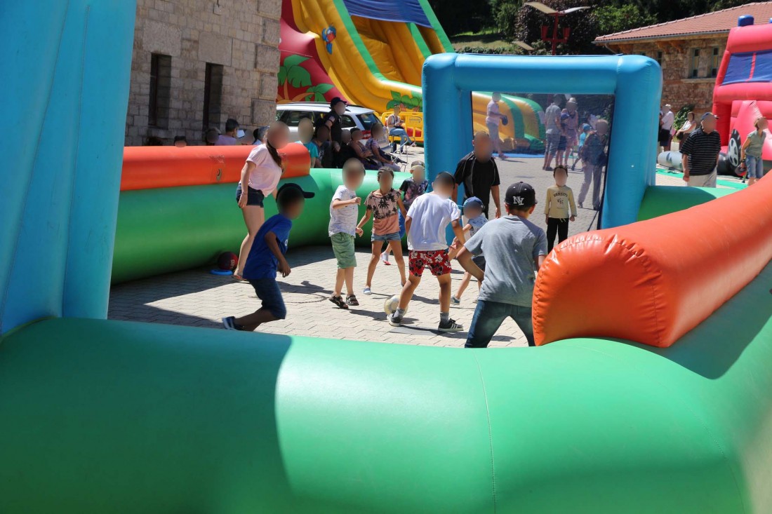 Un véritable terrain de foot gonflable avec embuts.