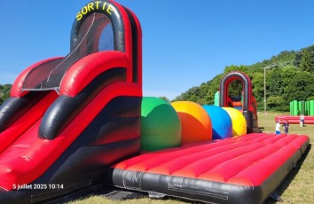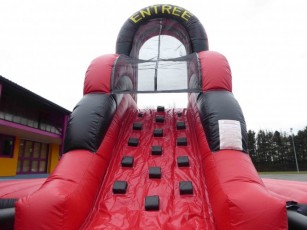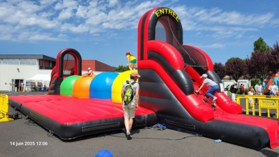Entrée par une grimpette avec marches et sortie par un toboggan.